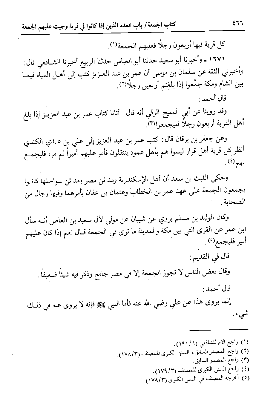 1671 - واخبرنا أبو سعيد حدثنا أبو العباس حدثنا الربيع أخبرنا الشافعي قال : وأخبرني الثقة عن سلمان بن موسى أن عمر بن عبد العزيز كتب إلى أهل المياه فيما بين الشام ومكة جمعوا إذا بلغتم أربعين رجلا.