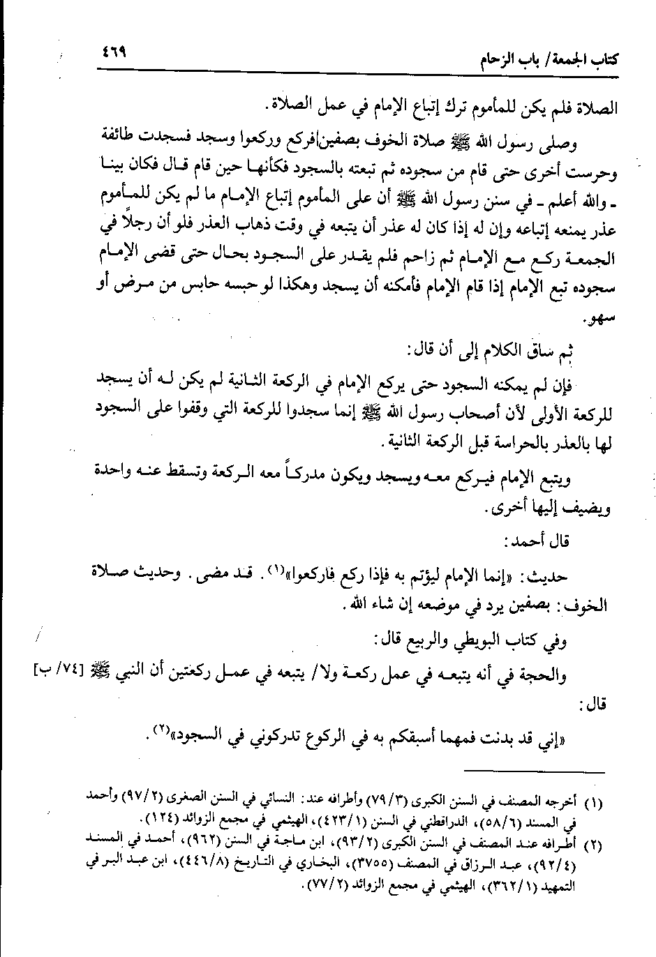 وفي كتاب البويطي والربيع قال : والحجة في انه يتبعه في عمل ركعة ولا يتبعه في عمل ركعتين أن النبي صلى الله عليه وسلم قال : إني قد بدنت فمهما اسبقكم به في الركوع تدركوني في السجود.