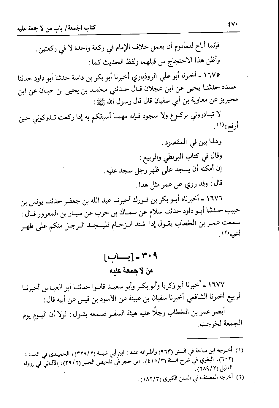 1676 - أخبرناه أبو بكر بن فورك أخبرنا عبد الله بن جعفر حدثنا يونس بن حبيب حدثنا أبو داود حدثنا سلام عن سماك بن حرب عن سيار بن المعرور قال : سمعت عمر بن الخطاب يقول إذا اشتد الزحام فليسجد الرجل منكم على ظهر أخيه.