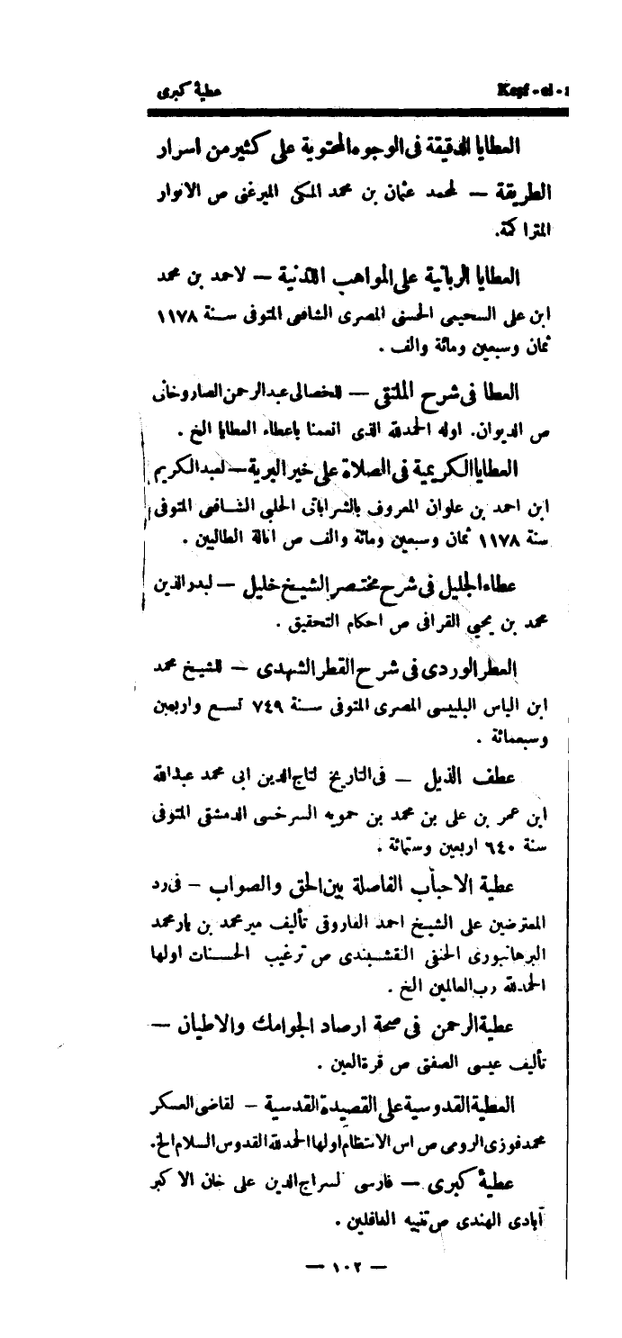 عطية الأحباب الفاصلة بين الحق والصواب - في رد المعترضين على الشيخ أحمد الفاروقي تأليف مير محمد بن يارمحمد البرهانبوري الحنفي النقشبندي ص ترغيب الحسنات اولها الحمدلله رب العالمين الخ.
