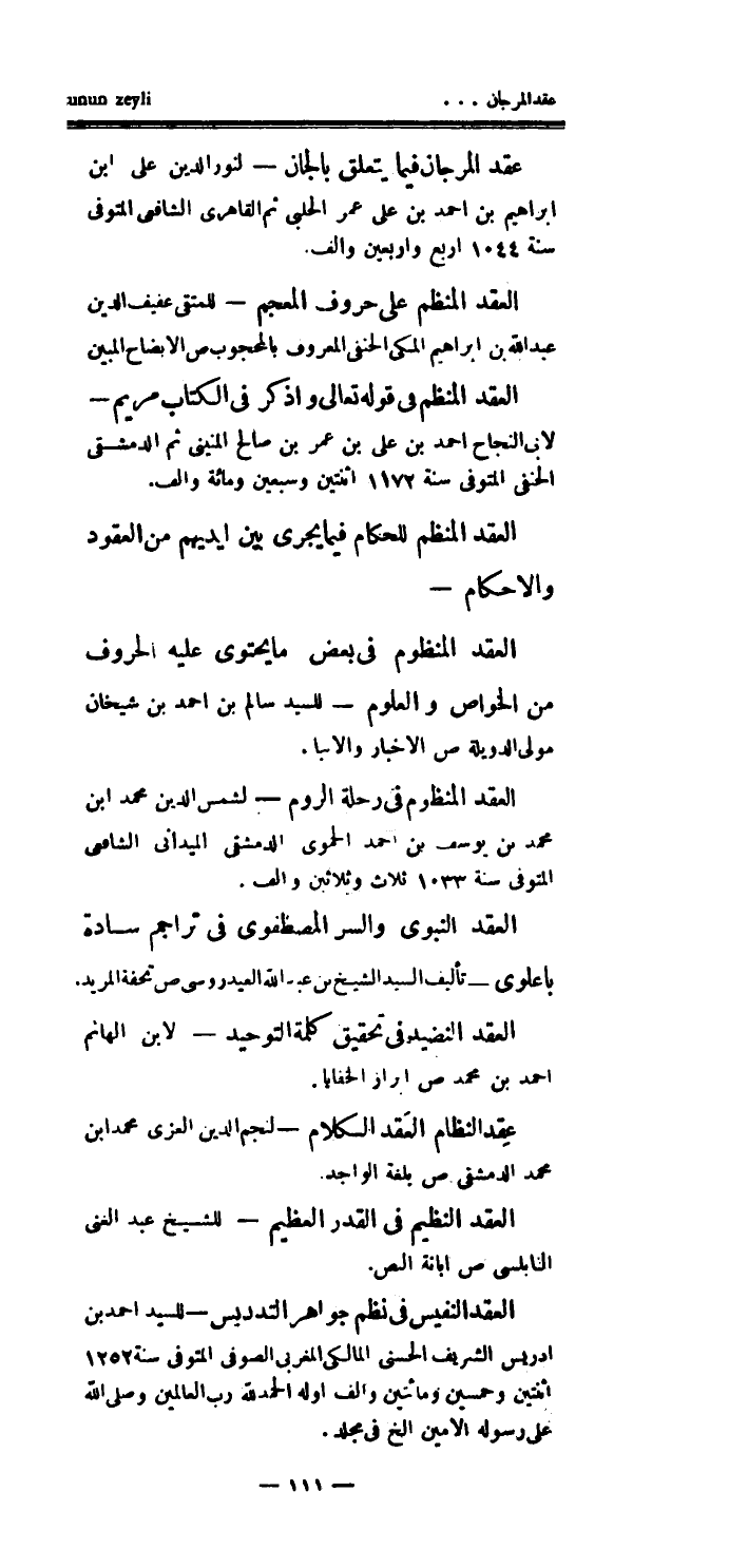العقد المنظم للحكام فيما يجري بين أيديهم من العقود والأحكام - العقد المنظوم في بعض ما يحتوي عليه الحروف من الخواص والعلوم - للسيد سالم بن أحمد بن شيخان مولى الدويلة ص الأخبار والأنباء.