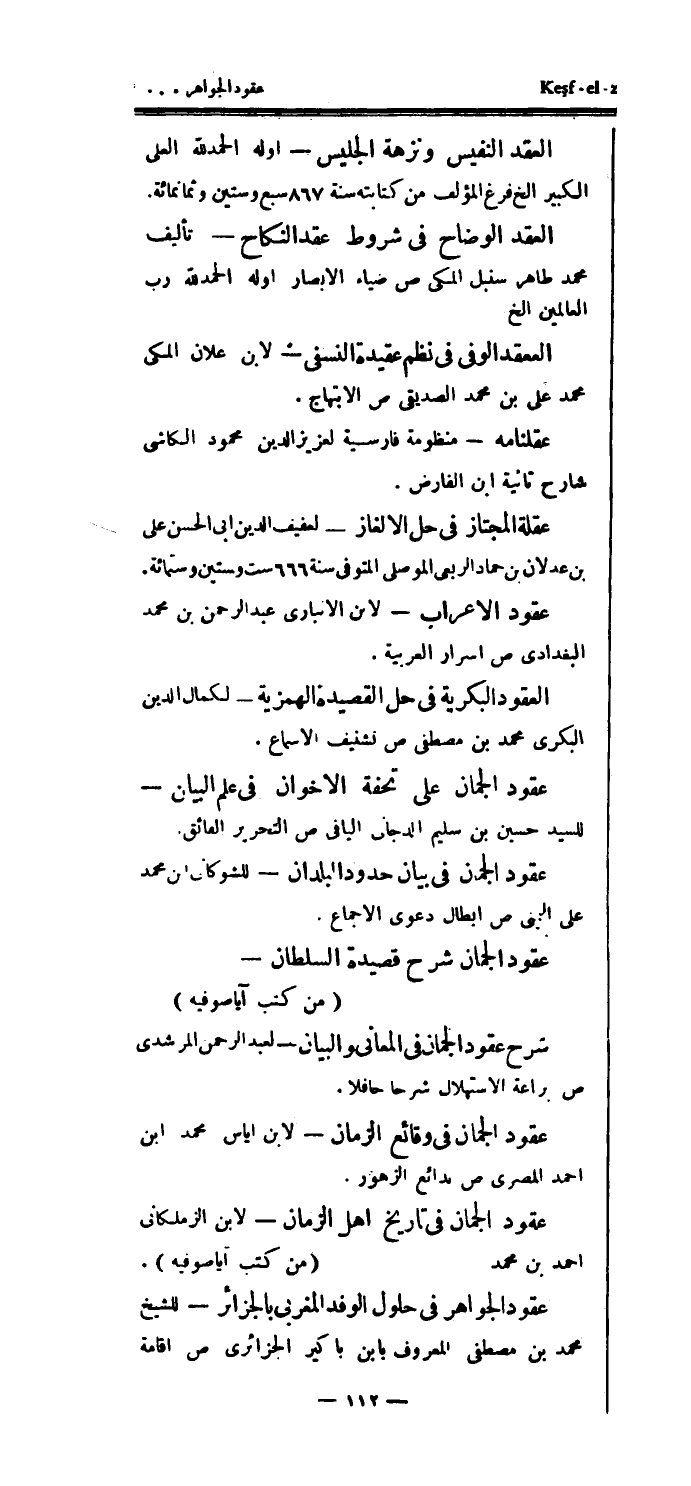 العقد النفيس ونزهة الجليس - اوله الحمدلله العلي الكبير إلخ فرغ المؤلف من كتابته سنة 867 سبع وستين وثمانمائة.
