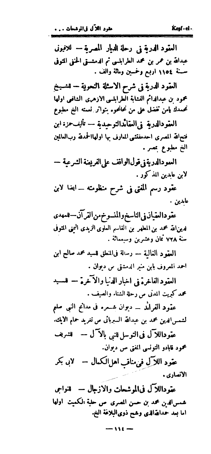العقود الدرية في رحلة الديار المصرية - للافيوني عبد الله بن عمر بن محمد الطرابلسي ثم الدمشقي الحنفي المتوفى سنة 1154 أربع وخمسين ومائة وألف.