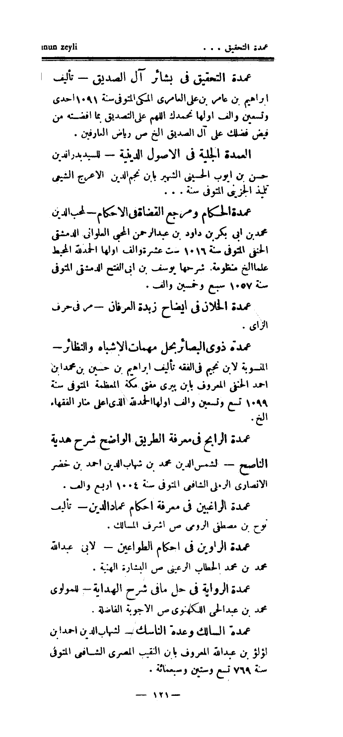 العمدة الجليلة في الأصول الدينية - للسيد بدر الدين حسن بن أيوب الحسيني الشهير بابن نجم الدين الأعرج الشيعي تلميذ الجزيني المتوفى سنة ... عمدة الحكام ومرجع القضاة في الأحكام - لمحب الدين محمد بن أبي بكر بن داود بن عبد الرحمن المحبى العلواني الدمشقي الحنفي المتوفى سنة 1016 ست عشرة وألف أولها الحمدلله المحيط علماً إلخ منظومة.