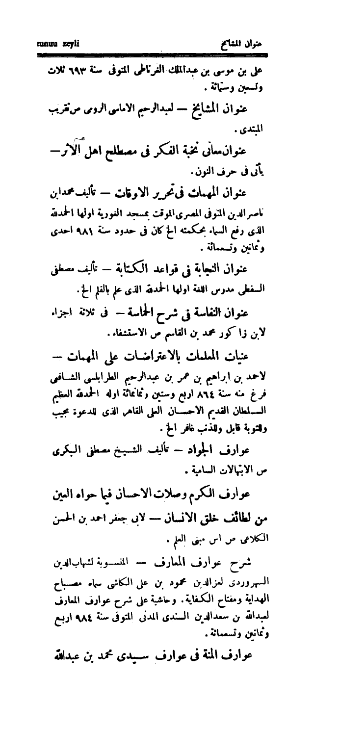 عنوان المهمات في تحرير الأوقات - تأليف محمد ابن ناصر الدين المنوفى المصري الموقت بمسجد الغورية اولها الحمدلله الذي رفع السماء بحكمته إلخ كان في حدود سنة 981 احدى ثمانين وتسعمائة.