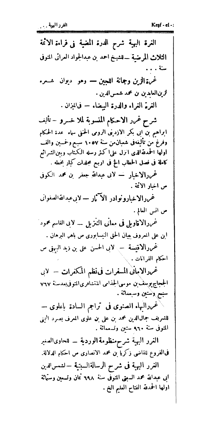 الغرة البهية شرح الدرة المضية في قراءة الأئمة الثلاث المرضية - للشيخ أحمد بن عبد الجواد العرائى المتوفى سنة ... غرة الزين وجمانة اللجين - وهو ديوان شعره لزين العابدين بن محمد شمس الدين.