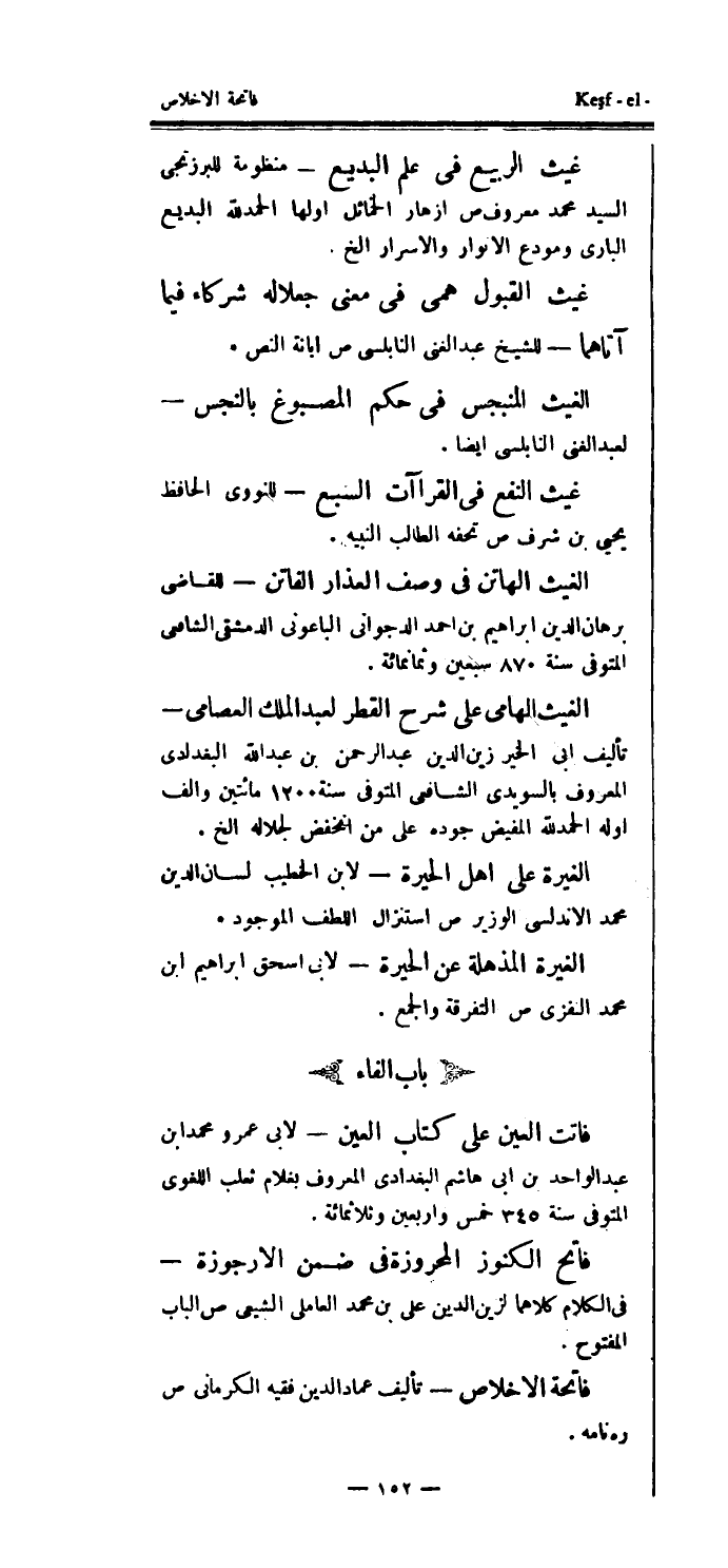 غيث الربيع في علم البديع - منظومة للبرزنجي السيد محمد معروف ص أزهار الخمائل اولها الحمدلله البديع الباري ومودع الأنوار والأسرار إلخ.