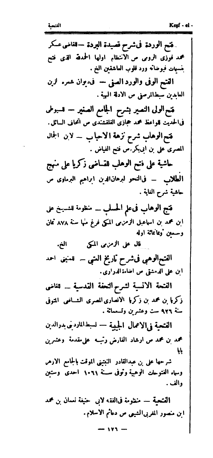 فتح الوهاب شرح نزهة الأحباب - لابن الجمال المصري علي بن أبي بكر ص فتح الفياض.