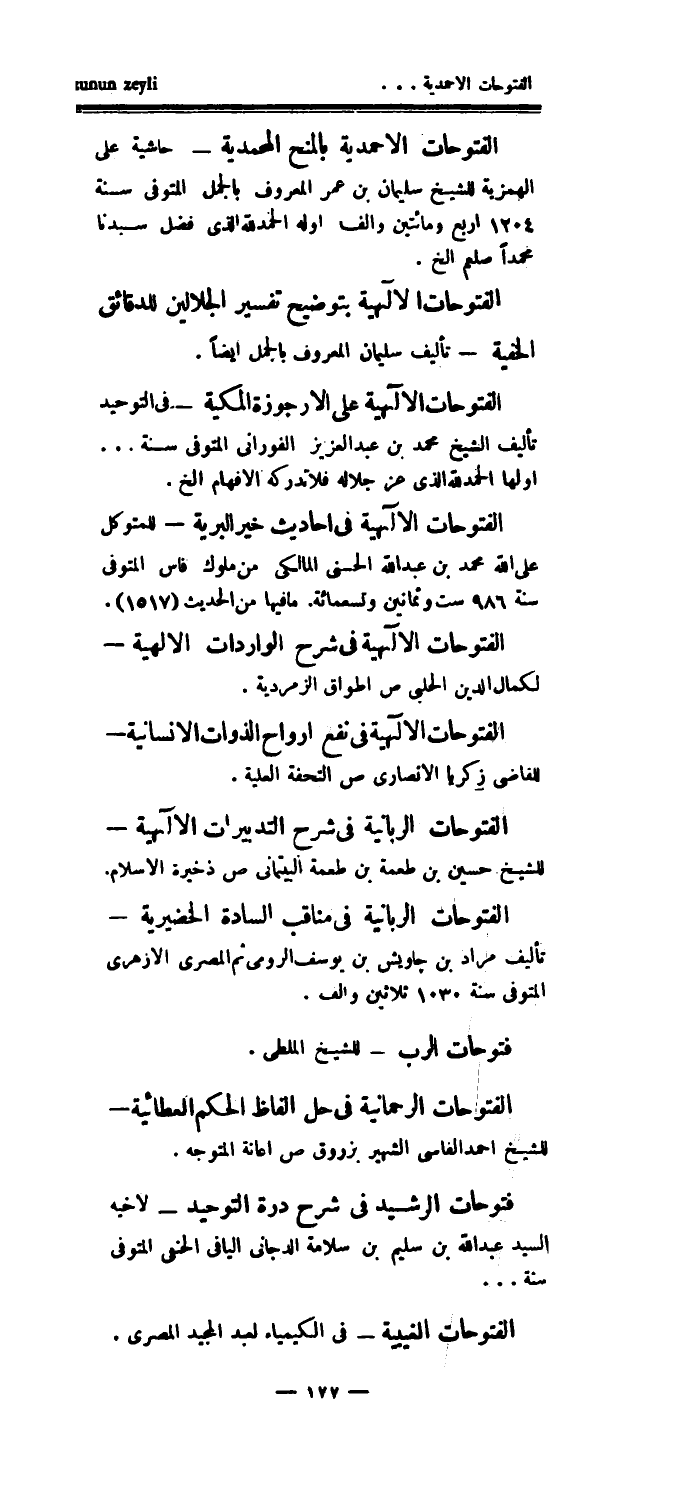 فتوحات الرشيد في شرح درة التوحيد - لاخيه السيد عبد الله بن سليم بن سلامة الدجاني اليافي الحنفي المتوفى سنة ... الفتوحات الغيبية - في الكيمياء لعبد المجيد المصري.