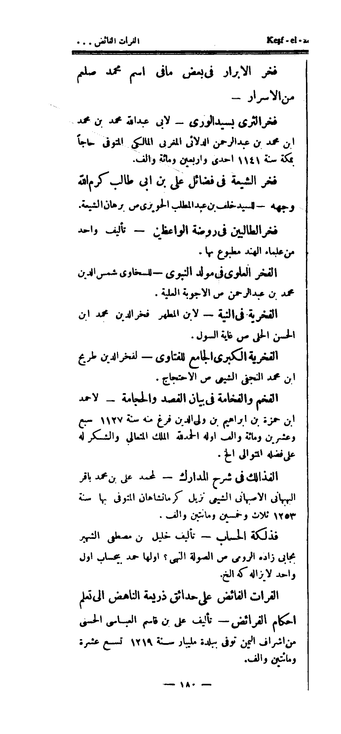فخر الطالبين في روضة الواعظين - تأليف واحد من علماء الهند مطبوع بها.