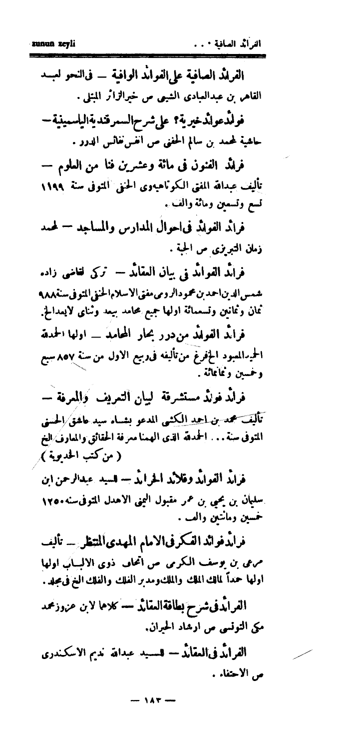 فرائد فوائد مستشرقة لبيان التعريف والمعرفة - تأليف محمد بن أحمد الكشي المدعو بشاه سيد عاشق الحسنى المتوفى سنة..الحمدلله الذي ألهمنا معرفة الحقائق والمعارف الخ (من كتب الخديوية) فرائد الفوائد وقلائد الخرائد - للسيد عبد الرحمن ابن سليمان بن يحيى بن عمر مقبول اليمني الأهدل المتوفى سنة 1250 خمسين ومائتين وألف.