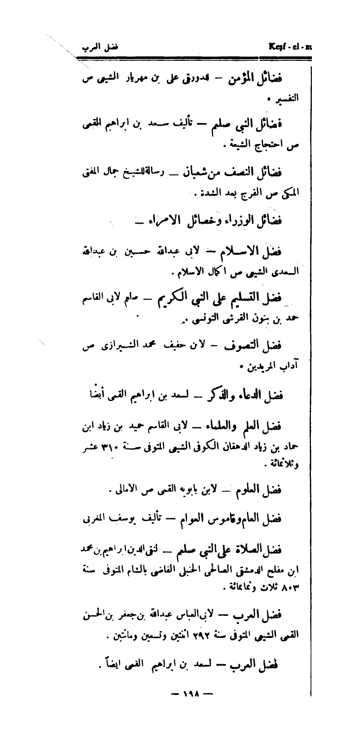 فضل الدعاء والذكر - لسعد بن إبراهيم القمى أيضاً فضل العلم والعلماء - لأبي القاسم حميد بن زياد ابن حماد بن زياد الدهقان الكوفي الشيعي المتوفى سنة 310 عشر وثلاثمائة.