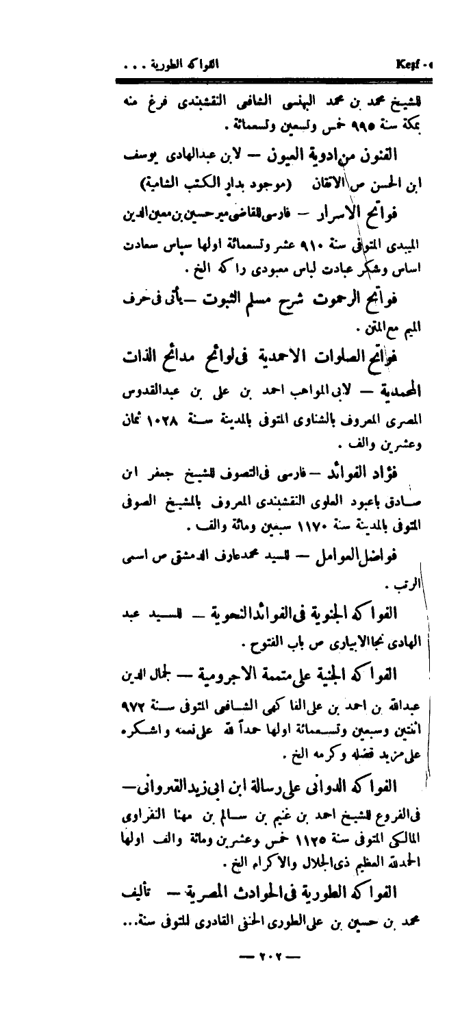الفواكه الطورية في الحوادث المصرية - تأليف محمد بن حسين بن علي الطوري الحنفي القادري المتوفى سنة ...
