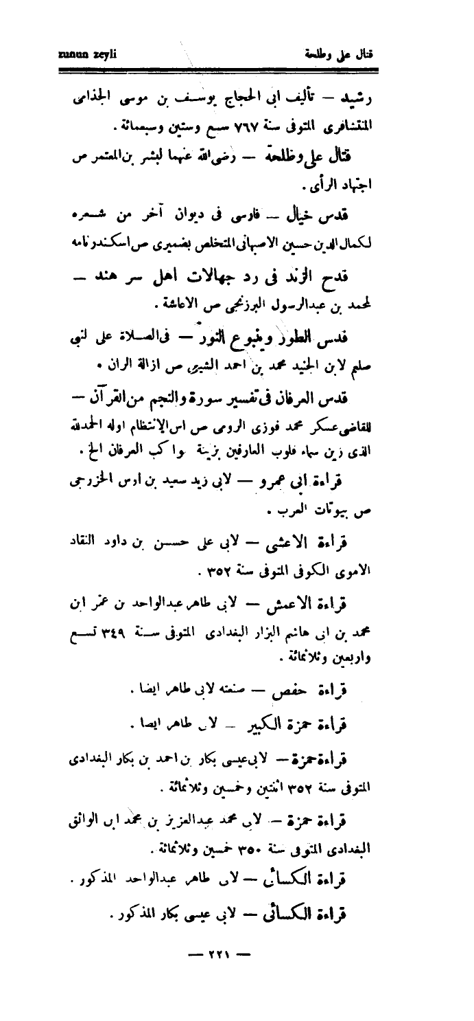 قراء ة حمزة - لأبي محمد عبد العزيز بن محمد ابن الواثق البغدادي المتوفى سنة 350 خمسين وثلاثمائة.