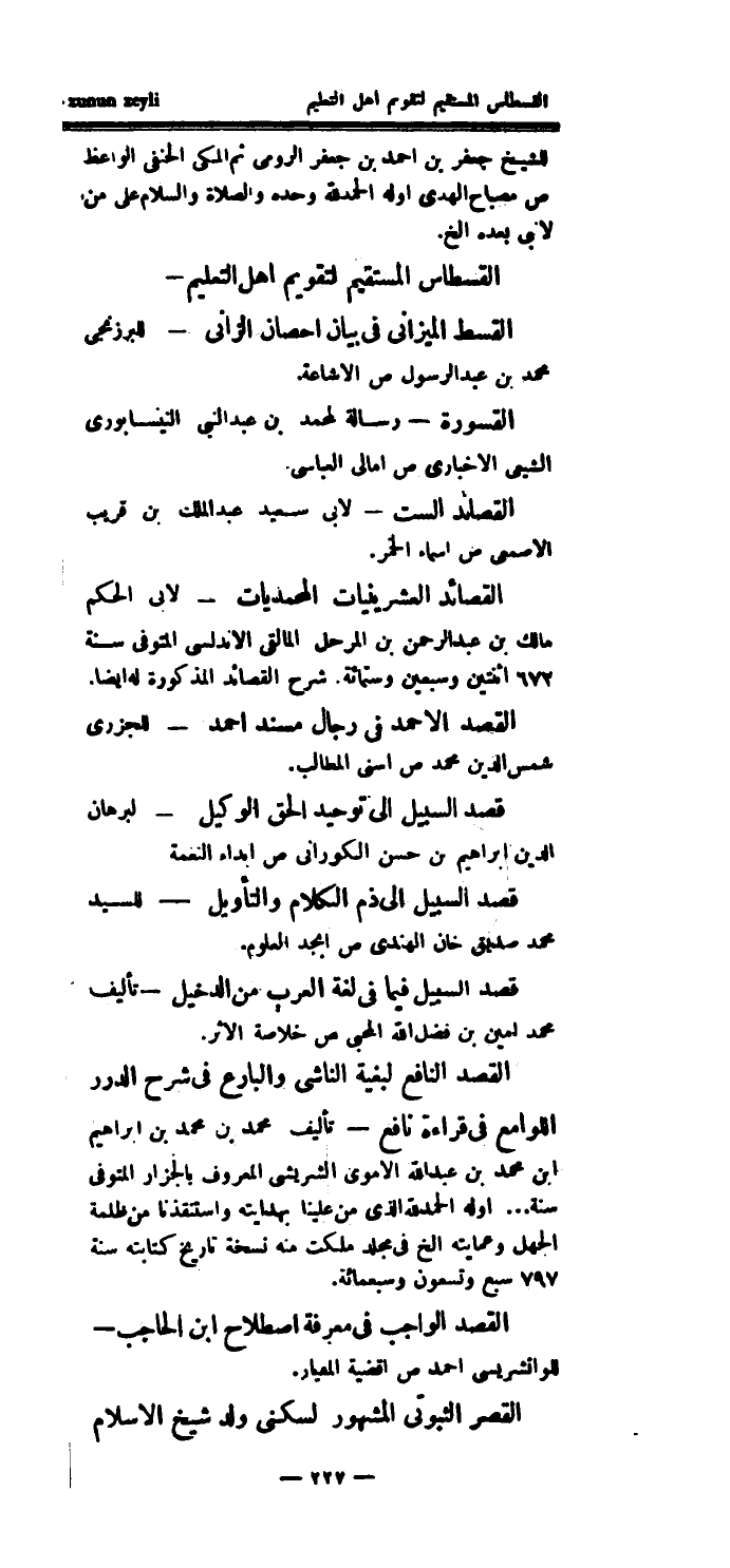 قصد السبيل إلى توحيد الحق الوكيل - لبرهان الدين إبراهيم بن حسن الكوراني ص إبداء النعمة قصد السبيل إلى ذم الكلام والتأويل - للسيد محمد صديق خان الهندي ص أبجد العلوم.