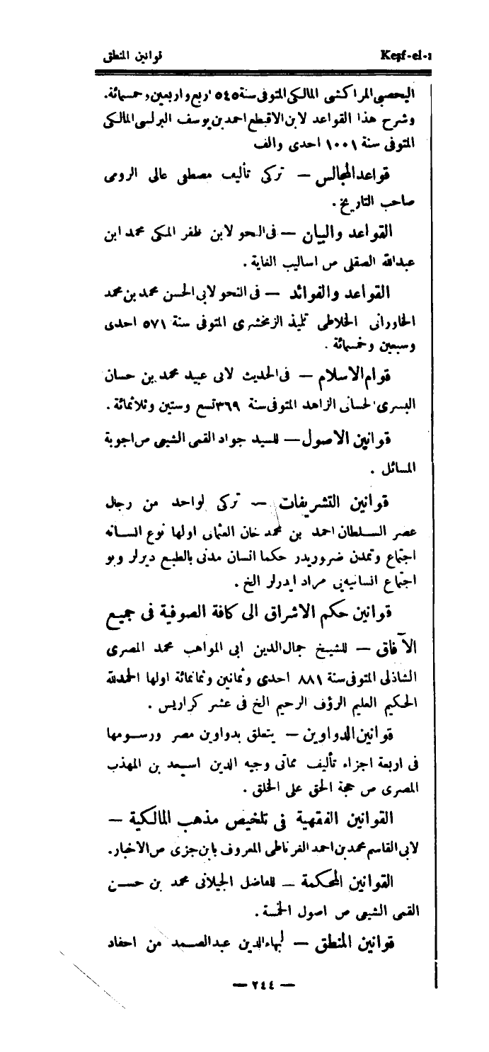 وشرح هذا القواعد لابن الأقيطع أحمد بن يوسف البرلسى المالكي المتوفى سنة 1001 إحدى وألف قواعد المجالس - تركي تأليف مصطفى عالي الرومي صاحب التاريخ.