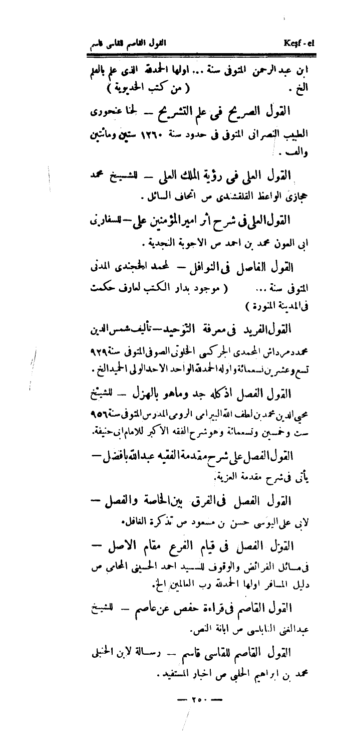 القول الفصل في قيام الفرع مقام الأصل - في مسائل الفرائض والوقوف للسيد أحمد الحسيني المحامي ص دليل المسافر اولها الحمدلله رب العالمين الخ.