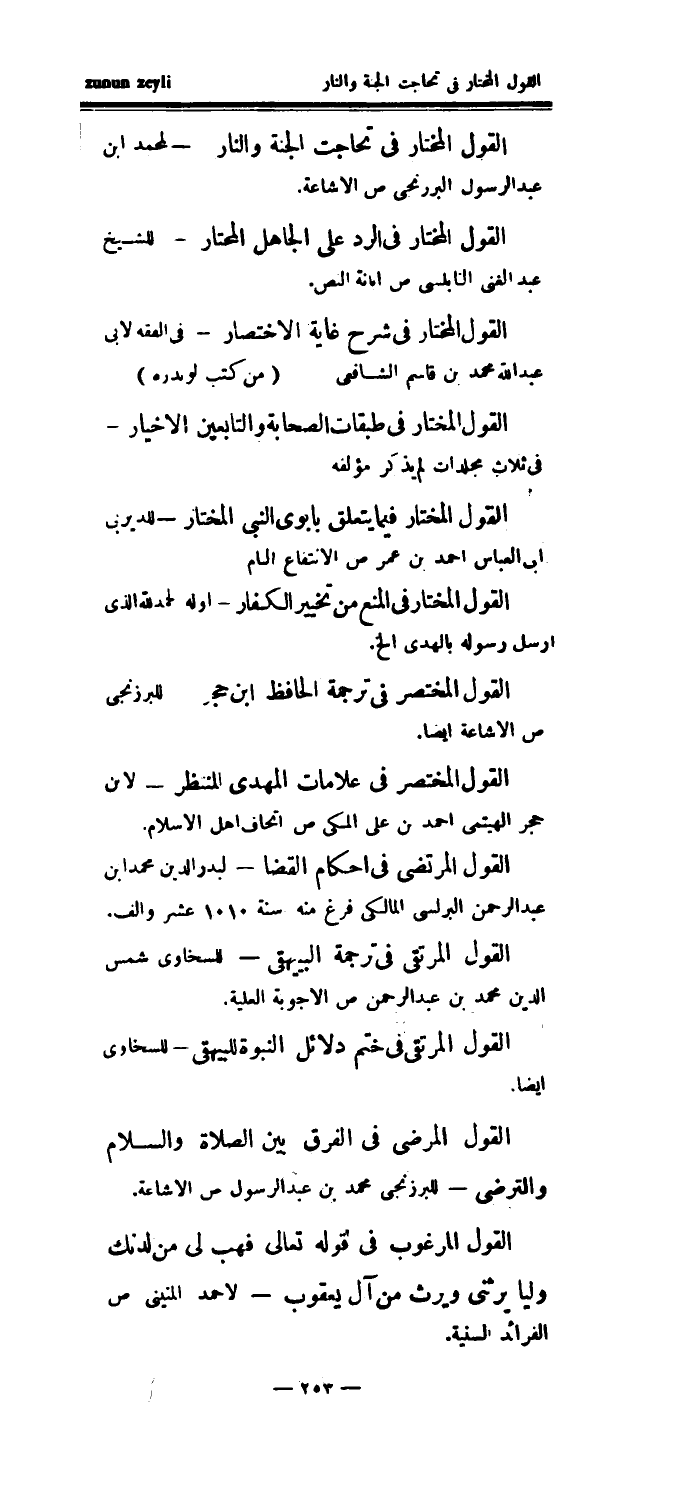 القول المختار في تحاجت الجنة والنار - لمحمد ابن عبد الرسول البرزنجي ص الإشاعة.
