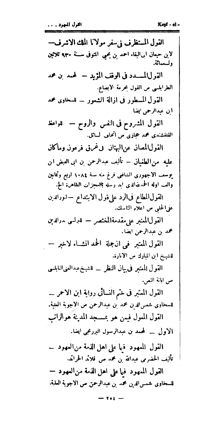 القول المسطور في إزالة الشعور - للسخاوي محمد ابن عبد الرحمن أيضاً القول المشروح في النفس والروح - للواعظ القلقشندي محمد حجازى اتحاف لسائل.