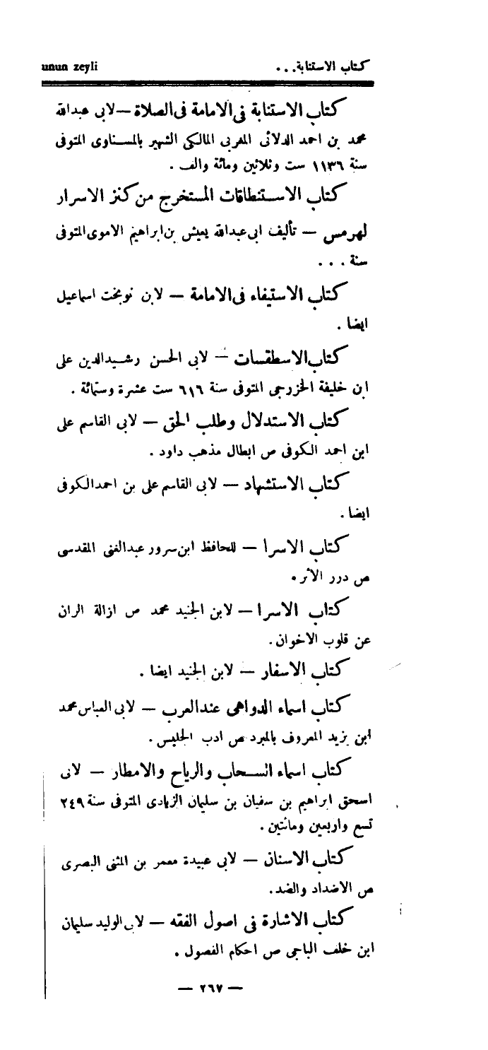 كتاب الاستنطاقات والمستخرج من كنز الأسرار لهرمس - تأليف أبي عبد الله يعيش بن إبراهيم الأموي المتوفى سنة ... كتاب الاستيفاء في الإمامة - لابن نوبخت إسماعيل أيضاً.