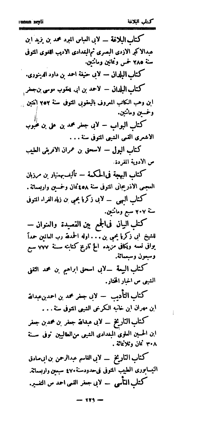 كتاب البواب - لأبي جعفر محمد بن علي بن محبوب الأشعري القمي الشيعي المتوفى سنة ... كتاب البول - لإسحق بن عمران الأفريقي الطبيب ص الأدوية المفردة.