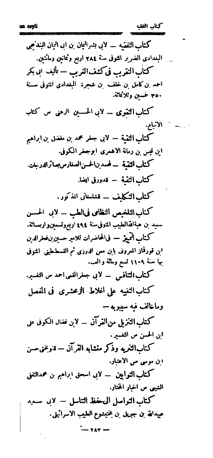 كتاب التفقيه - لأبي بشر اليمان بن أبي اليمان البندنيجي البغدادي الضرير المتوفى سنة 284 أربع وثمانين ومائتين.