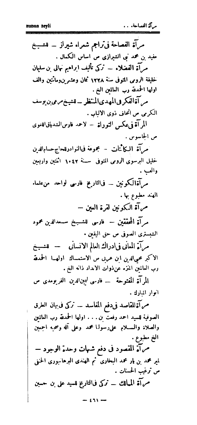 مرآة المقاصد في دفع المفاسد - تركي في بيان الطرق الصوفية للسيد أحمد رفعت بن ... اولها الحمدلله رب العالمين والصلاة والسلام على رسولنا محمد وعلى آله وصحبه أجمعين الخ مطبوع.