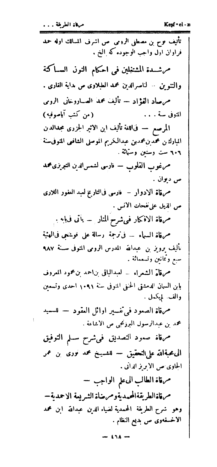 مرصاد الفؤاد - تأليف محمد الصاروخاني الرومي المتوفى سنة ... (من كتب أياصوفيه) المرصع - في اللغة تأليف ابن الأثير الجزري مجدالدين المبارك بن محمد بن محمد بن عبد الكريم الموصلي الشافعي المتوفى سنة 606 ست وستمائة.