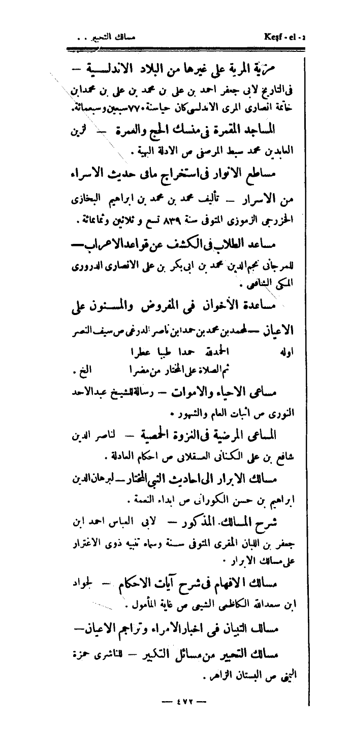 مسالك التبيان في اخبار الأمراء وتراجم الأعيان - مسالك التحبير من مسائل التكبير - للناشري حمزة اليمني ص البستان الزاهر.