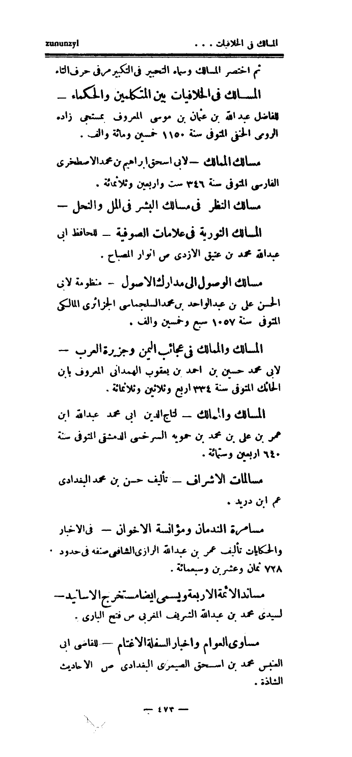 مسالك النظر في مسالك البشر في المل والنحل - المسالك النورية في علامات الصوفية - للحافظ ابي عبد الله محمد بن عتيق الأزدي ص أنوار المصباح.