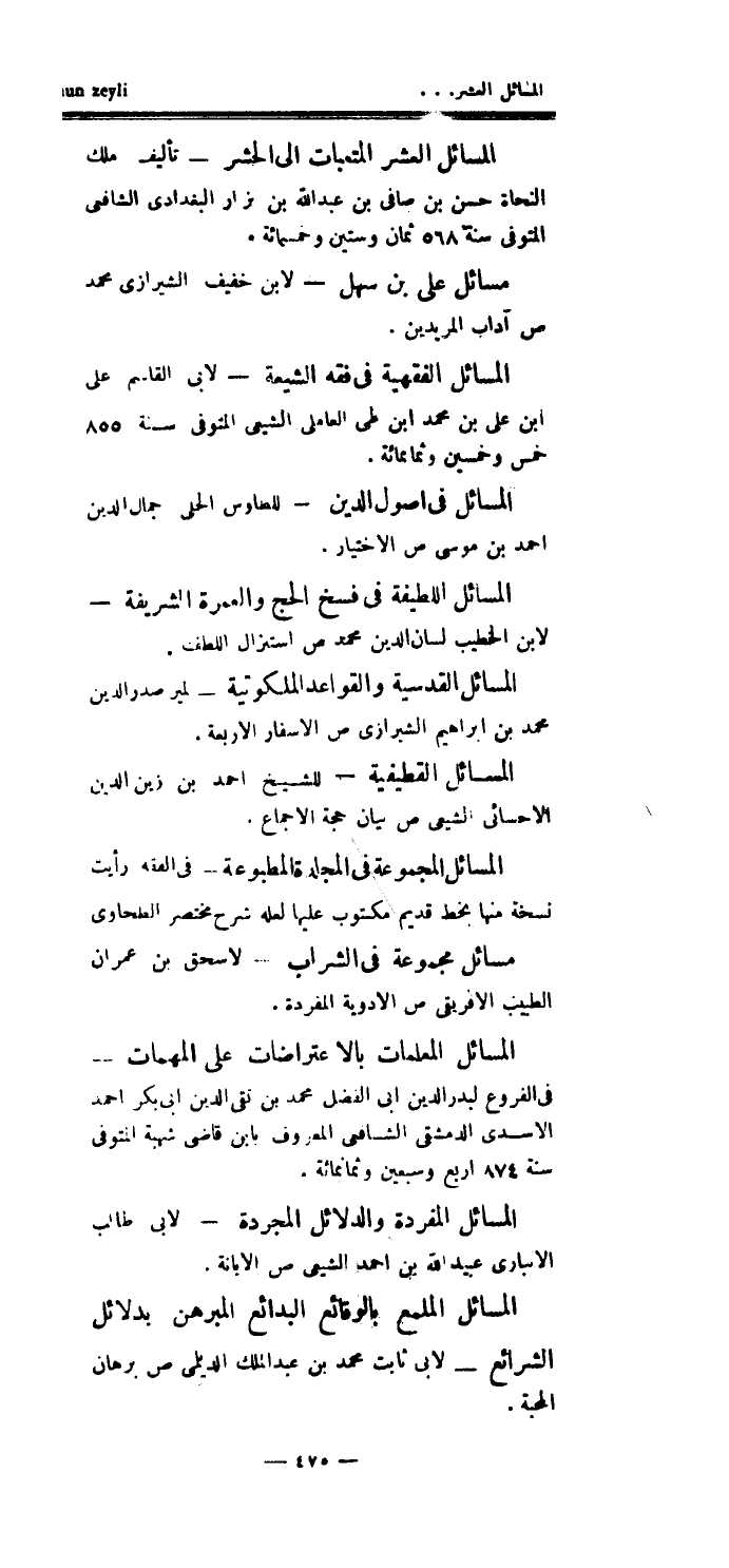 المسائل المجموعة في المجلدة المطبوعة - في الفقه رأيت نسخة منها بخط قديم مكتوب عليها لعله شرح مختصر الطحاوى مسائل مجموعة في الشراب - لإسحق بن عمران الطبيب الأفريقي ص الأدوية المفردة.