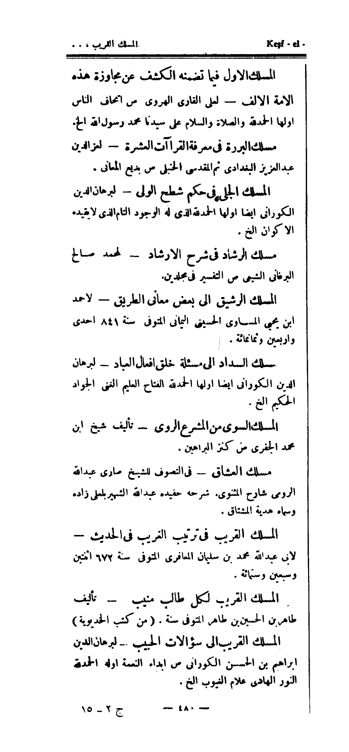 (من كتب الخديوية) المسلك القريب إلى سؤالات الحبيب - لبرهان الدين إبراهيم بن الحسن الكوراني ص إبداء النعمة اوله الحمدلله النور الهادي علام الغيوب الخ.
