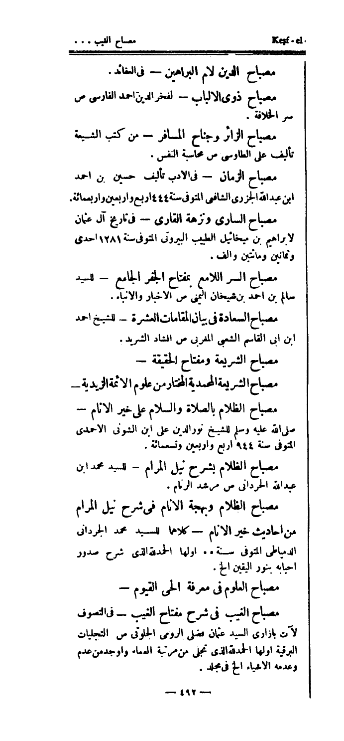 مصباح الشريعة ومفتاح الحقيقة مصباح الشريعة المحمدية المختار من علوم الأئمة الزيدية مصباح الظلام بالصلاة والسلام على خير الأنام صلى الله عليه وسلم للشيخ نور الدين علي ابن الشوني الأحمدي المتوفى سنة 944 أربع وأربعين وتسعمائة.