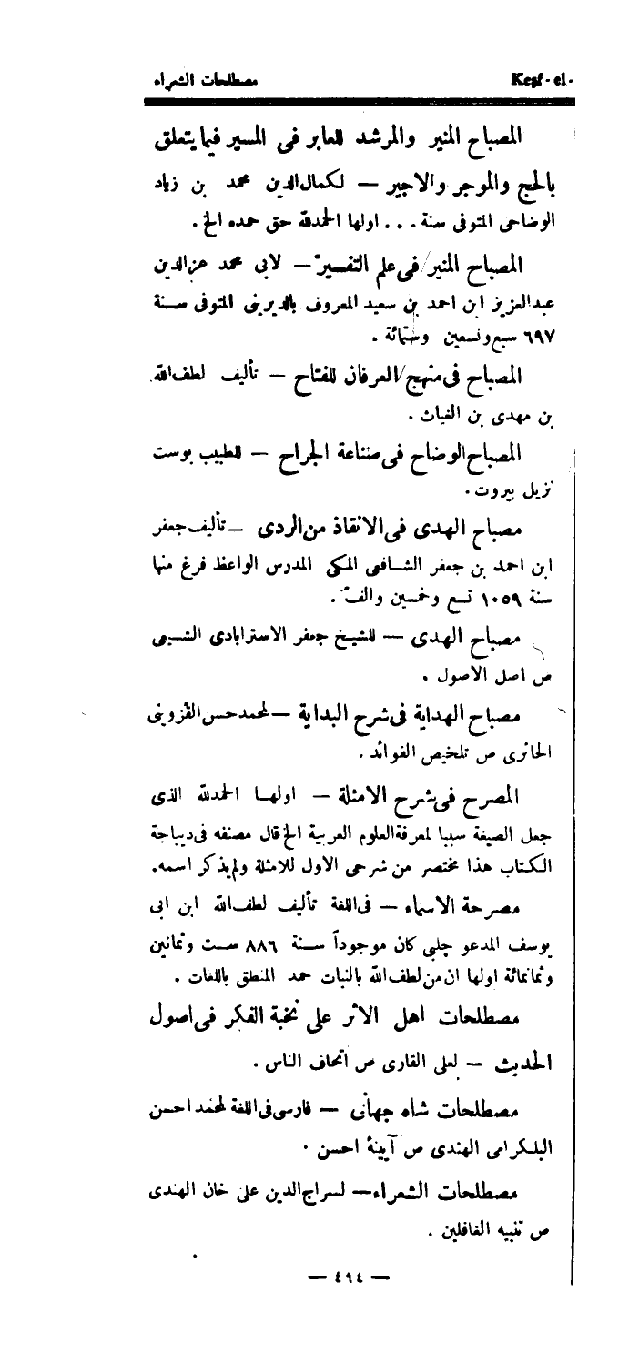 مصطلحات الشعراء لسراج الدين علي خان الهندي ص تنبيه الغافلين.
