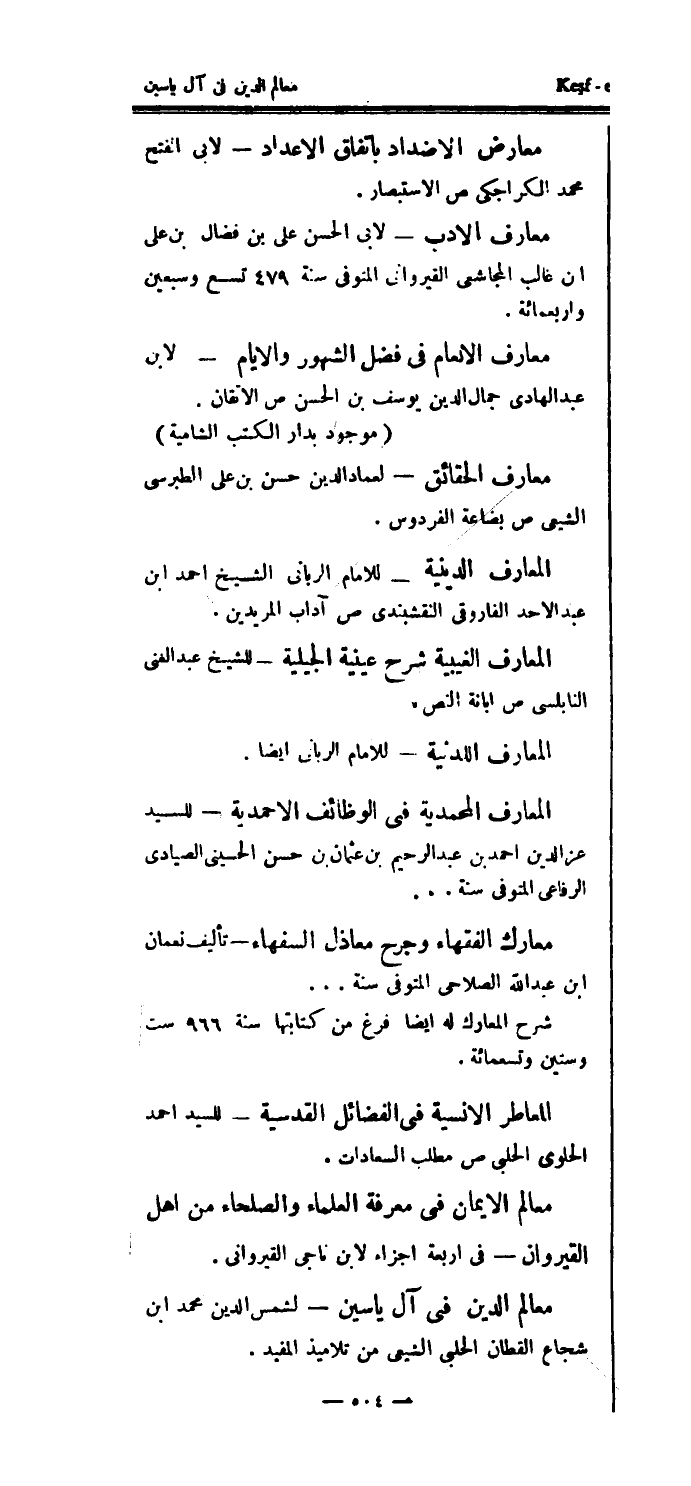 معالم الدين في آل ياسين - لشمس الدين محمد ابن شجاع القطان الحلبي الشيعى من تلاميذ المفيد.