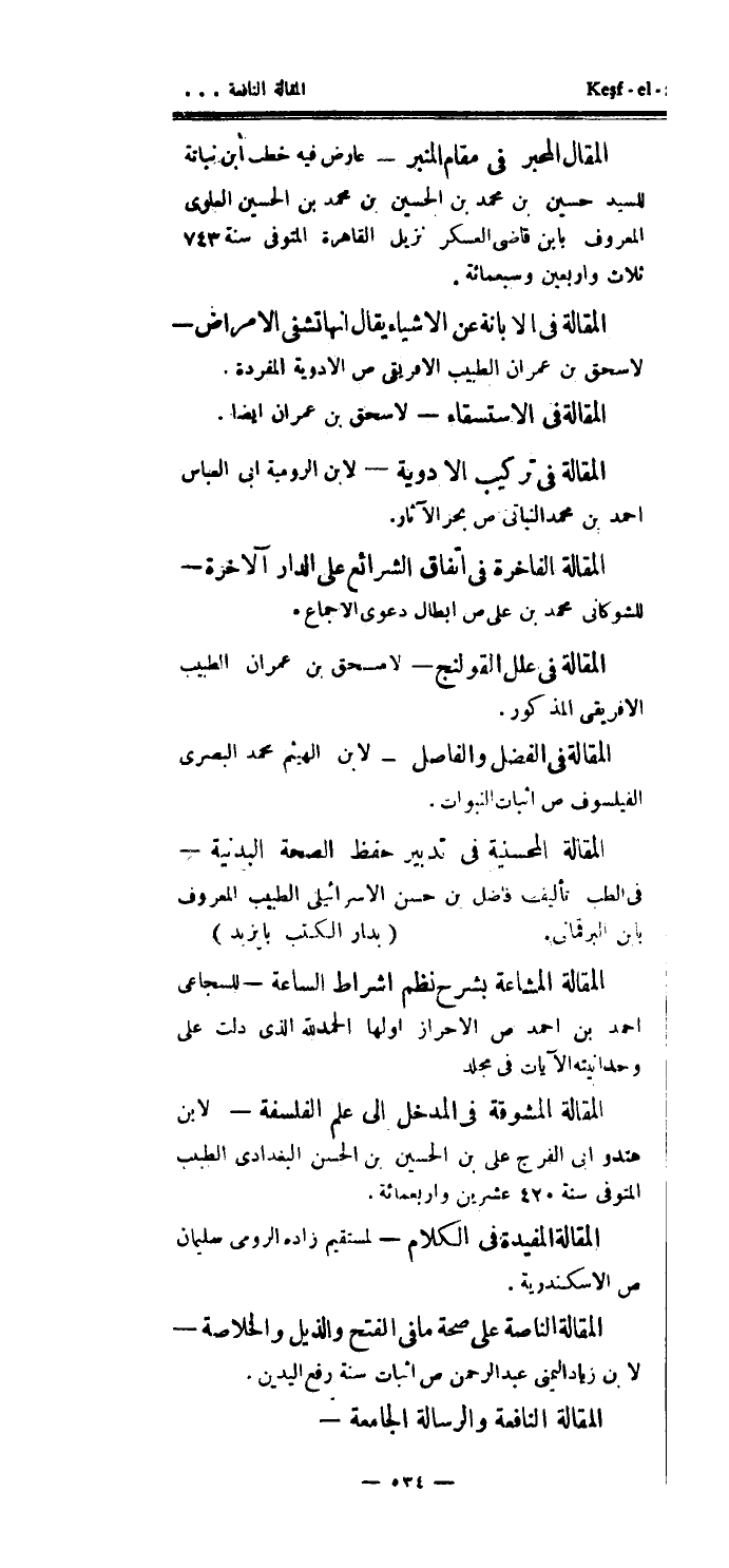 (بدار الكتب بايزيد) المقالة المشاعة بشرح نظم إشراط الساعة - للسجاعي أحمد بن أحمد ص الاحراز اولها الحمدلله الذي دلت على وحدانيته الآيات في مجلد المقالة المشوقة في المدخل إلى علم الفلسفة - لابن هتدو أبي الفرج علي بن الحسين بن الحسن البغدادي الطبيب المتوفى سنة 420 عشرين وأربعمائة.