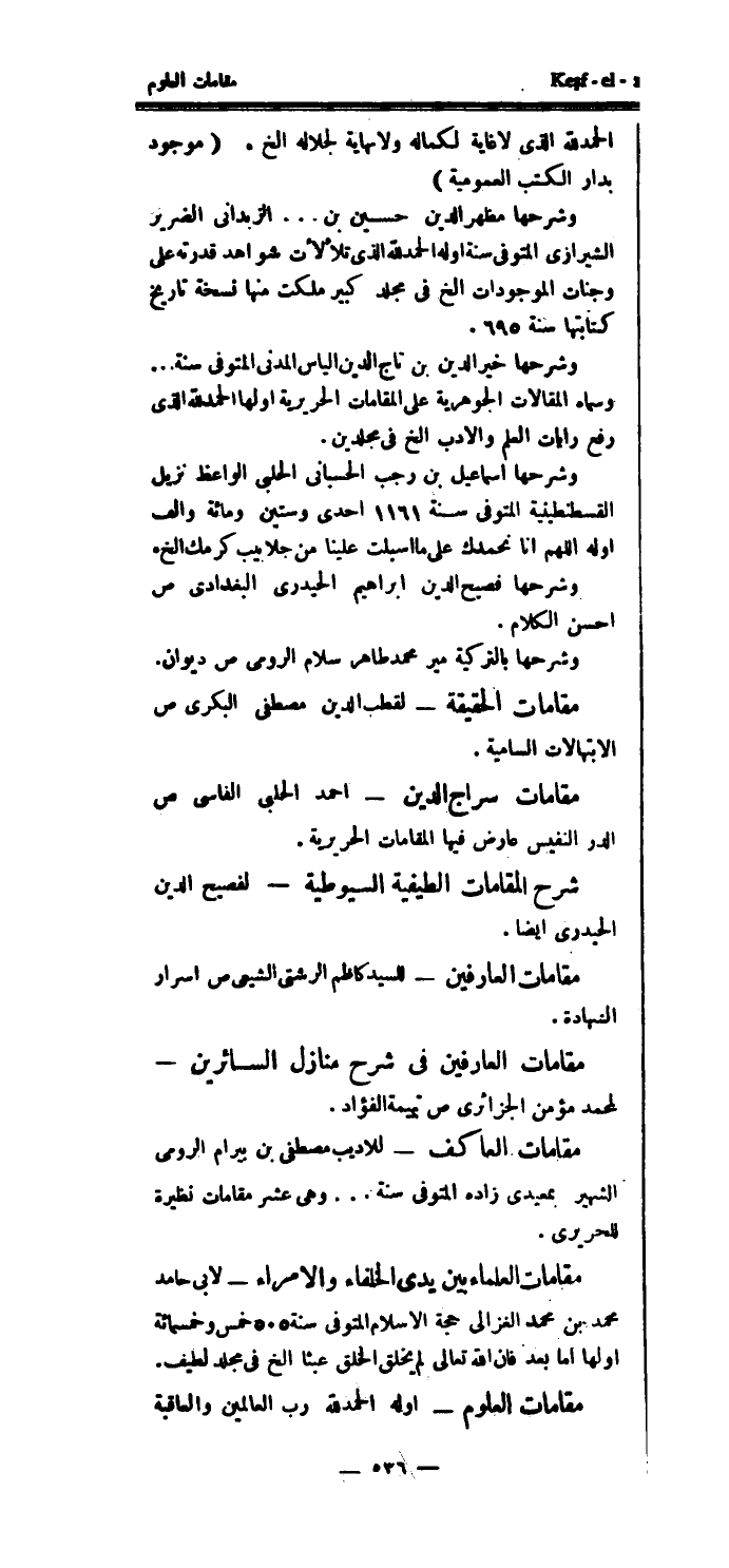 مقامات العلوم - أوله الحمد لله رب العالمين والعاقبة