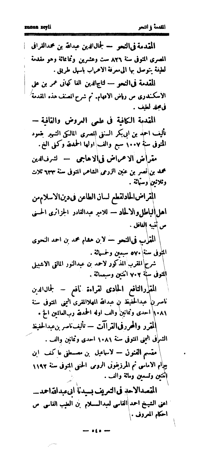 المقدمة في النحو - لجمال الدين عبد الله بن محمد القرافى المصري المتوفى سنة 826 ست وعشرين وثمانمائة وهو مقدمة لطيفة يتوصل بها الى معرفة الاعراب باسهل طريق.