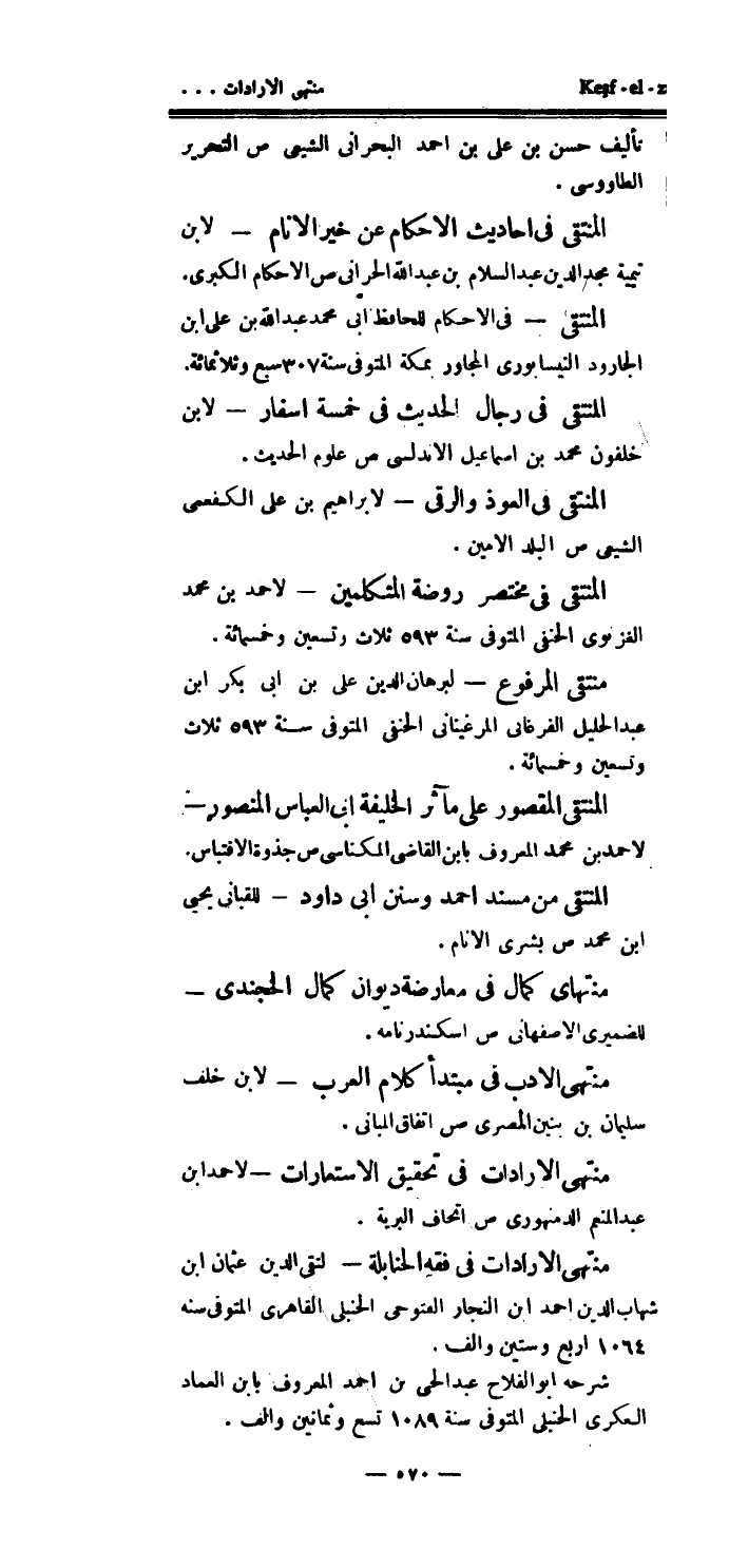 منتهى الإرادات في فقه الحنابلة - لتقي الدين عثمان ابن شهاب الدين احمد ابن النجار الفتوحي الحنبلي القاهري المتوفى سنة 1064 أربع وستين وألف.
