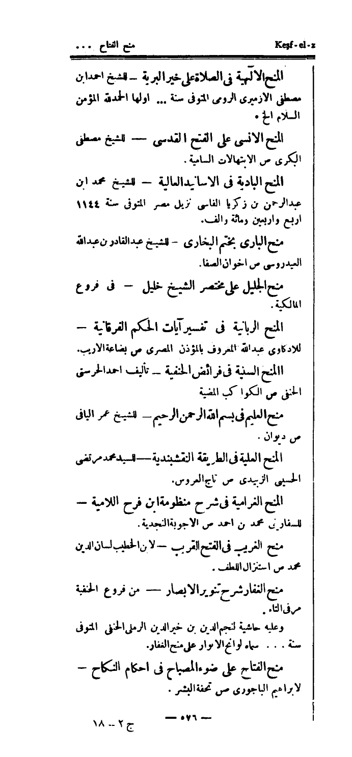 المنح الربانية في تفسير آيات الحكم الفرقانية - للإدكاوي عبد الله المعروف بالمؤذن المصري ص بضاعة الأريب.