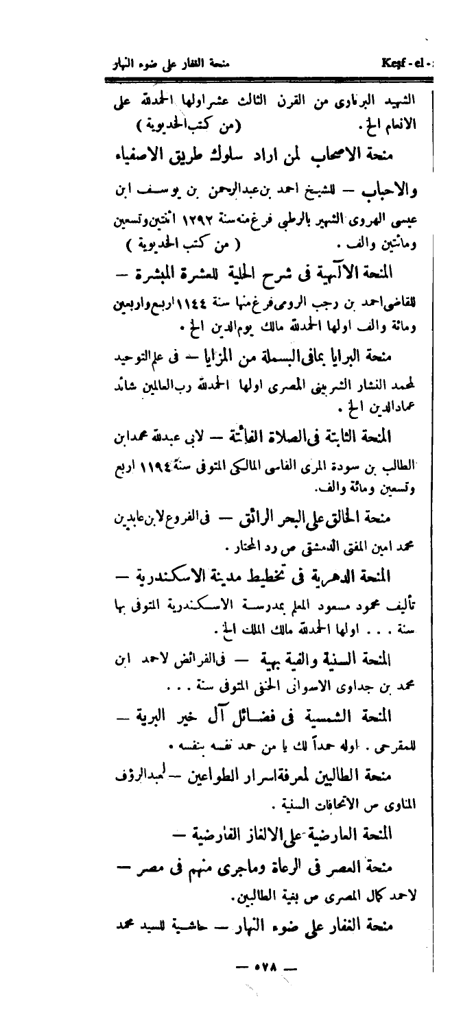 منحة الغفار على ضوء النهار - حاشية للسيد محمد