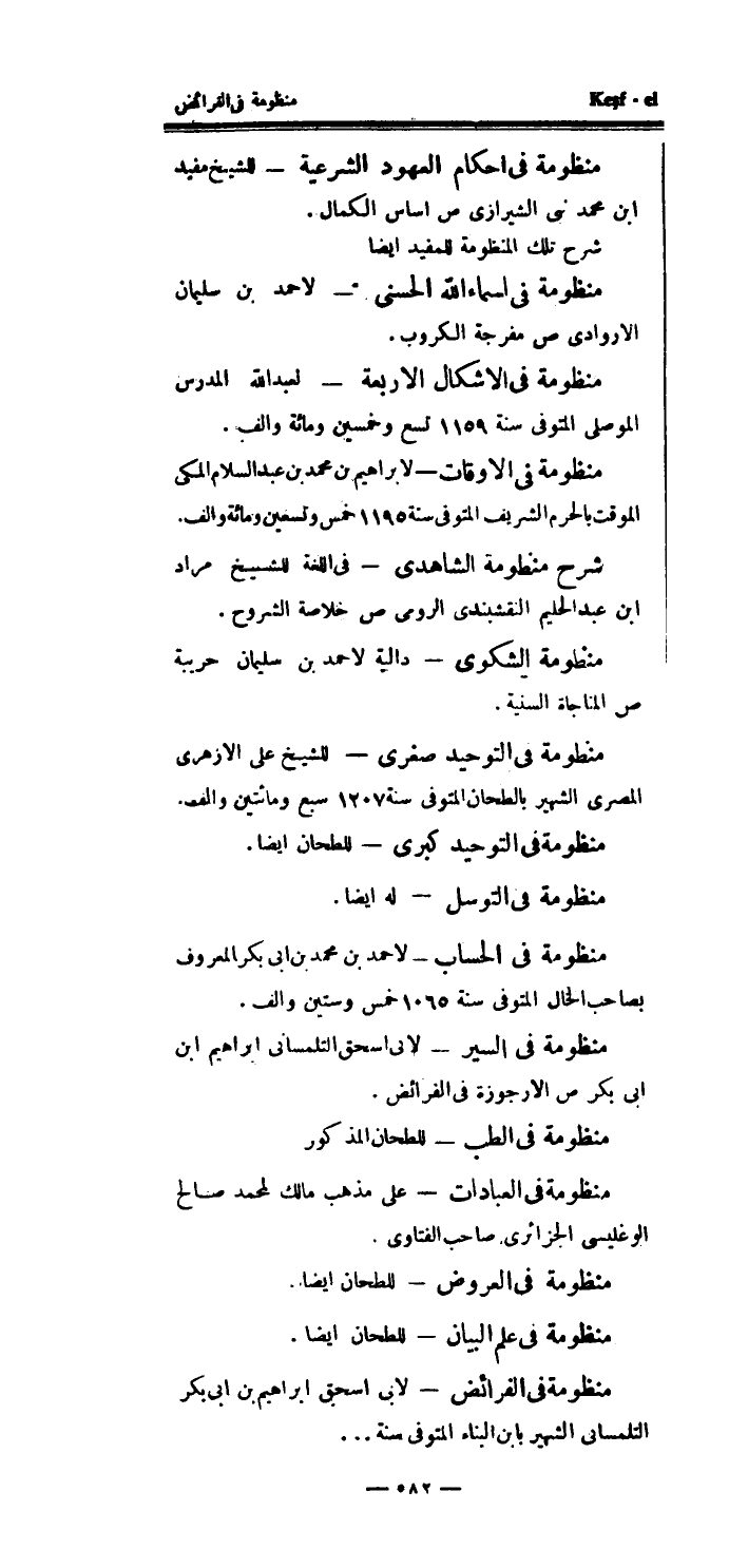 شرح منظومة الشاهدى - في اللغة للشيخ مراد ابن عبد الحليم النقشبندى الرومي ص خلاصة الشروح.