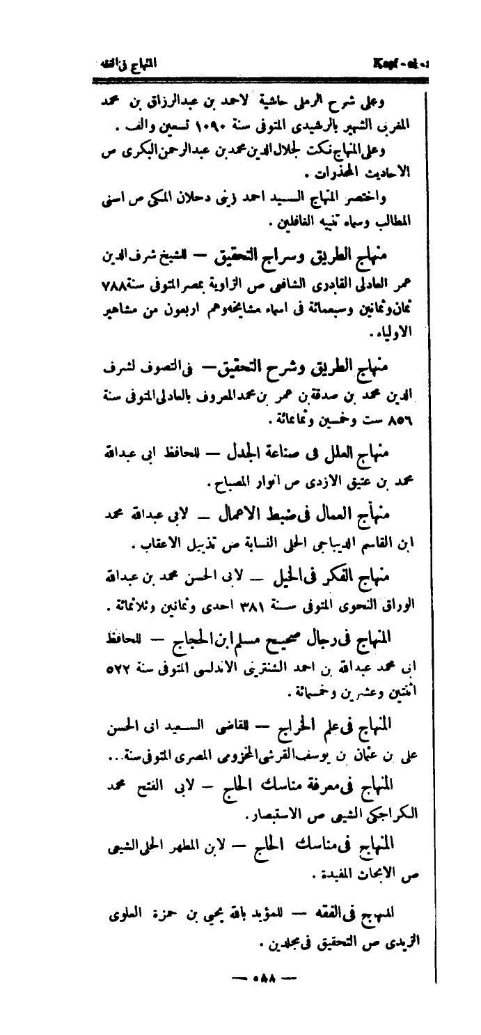 منهاج الطريق وسراج التحقيق - للشيخ شرف الدين عمر العادلي القادري الشافعي ص الزاوية بمصر المتوفى سنة 788 ثمان وثمانين وسبعمائة في أسماء مشايخه وهم أربعون من مشاهير الأولياء.