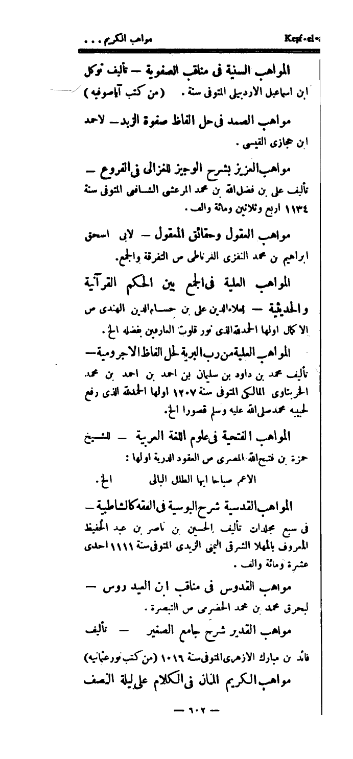 المواهب العلية في الجمع بين الحكم القرآنية والحديثية - لعلاء الدين علي بن حسام الدين الهندي ص الأكمال اولها الحمدلله الذي نور قلوب العارفين بفضله الخ.