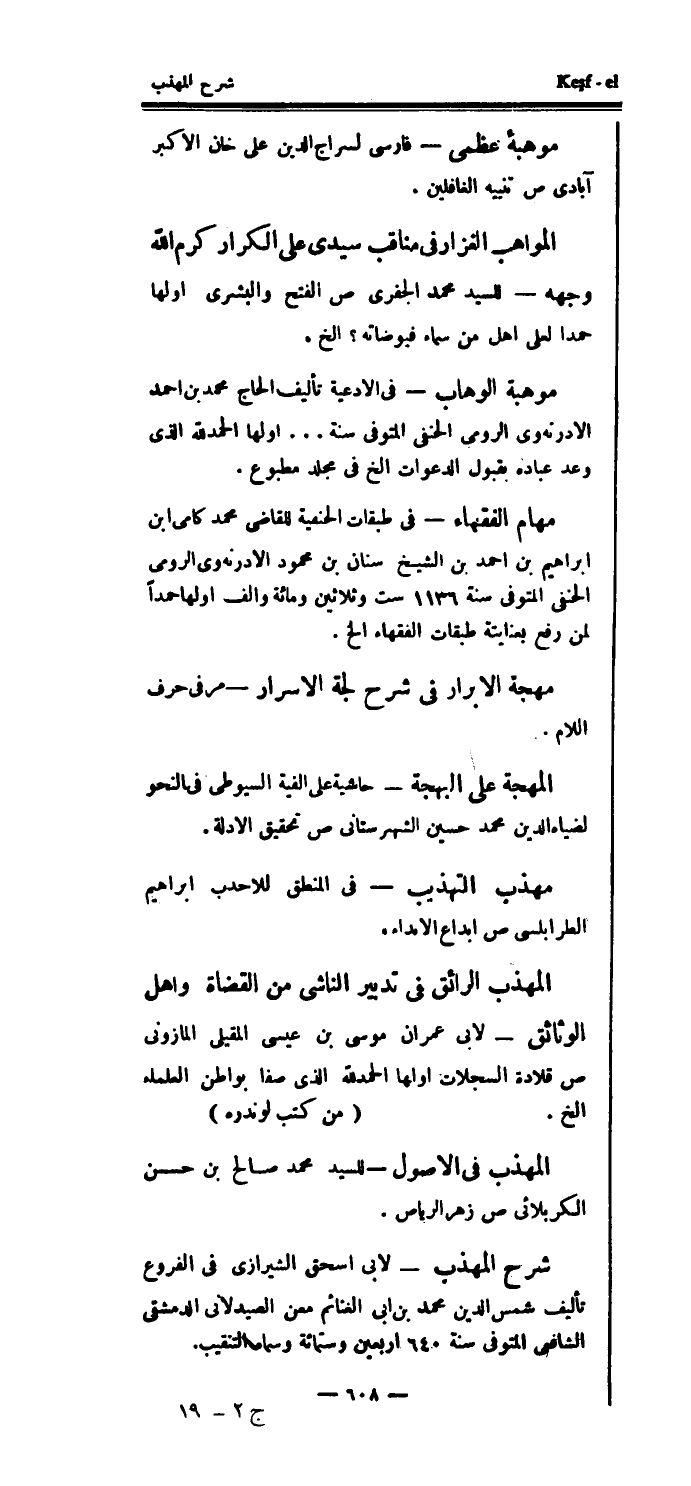 مهام الفقهاء - في طبقات الحنفية للقاضي محمد كامي ابن إبراهيم بن أحمد بن الشيخ سنان بن محمود الأدرنه وى الرومي الحنفي المتوفى سنة 1136 ست وثلاثين ومائة وألف أولها حمدا لمن رفع بعنايته طبقات الفقهاء الخ.