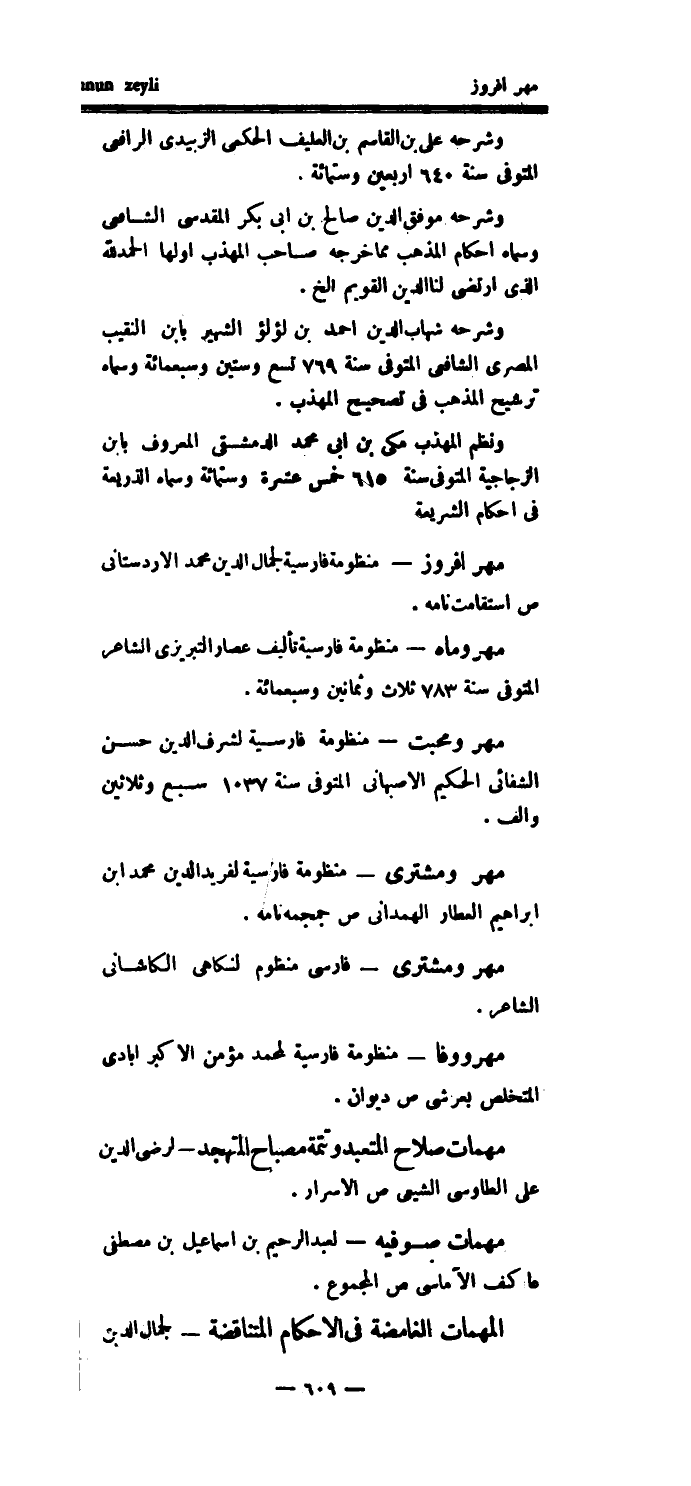 مهر وماه - منظومة فارسية تأليف عصار التبريزى الشاعر المتوفى سنة 783 ثلاث وثمانين وسبعمائة.