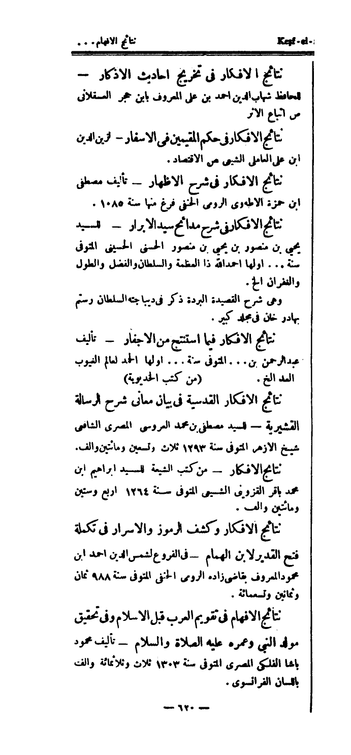 نتائج الأفكار في شرح الإظهار - تأليف مصطفى ابن حمزة الأطه وى الرومي الحنفي فرغ منها سنة 1085.