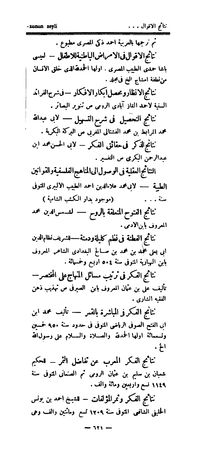 النتائج العقلية في الوصول إلى المناهج الفلسفية والقوانين الطبية - لأبي محمد علاء الدين أحمد الطبيب الالبيري المتوفى سنة ... (موجود بدار الكتب الشامية) نتائج الفتوح المتعلقة بالروح - لشمس الدين محمد المعروف بابن الادمى.