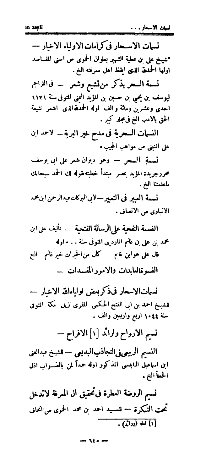 النسوة العابدات والأمور المفسدات - نسمات الأسحار في ذكر بعض أولياء الله الأخيار - للشيخ أحمد بن أبي الفتح الحكمي المقرى نزيل مكة المتوفى سنة 1044 أربع وأربعين وألف.