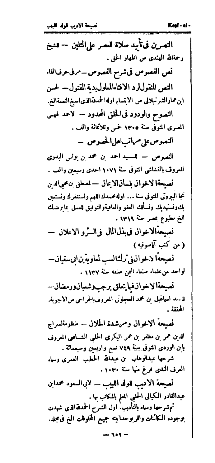 النصوح والودود في الخلق المحدود - لأحمد فهمي المصري المتوفى سنة 1305 خمس وثلاثمائة وألف.